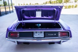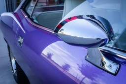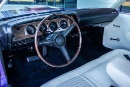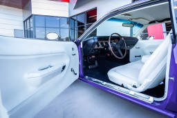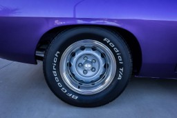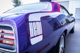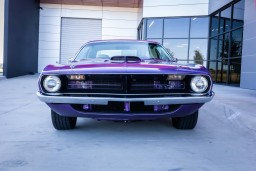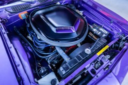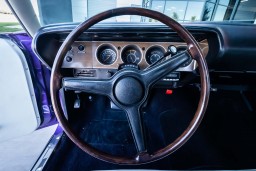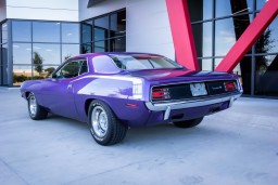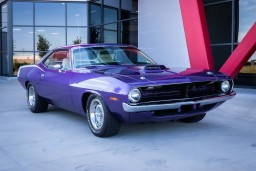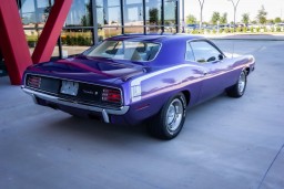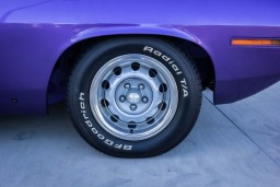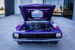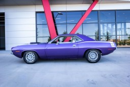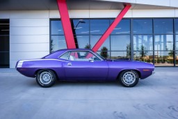 This 1970 Plymouth HEMI ‘Cuda was born with a 426 HEMI engine and a Shaker hood, and retains its original Fender Tag. One of 652 HEMI cars produced, this ‘Cuda has been meticulously restored to factory specifications, with every nut and bolt attended to in a complete rotisserie restoration, which was done with some sheet metal from other ‘Cudas. The ‘Cuda was finished in Plum Crazy Purple, which is complemented by its restored Ivory interior. The date-code-correct 426ci HEMI engine has been rebuilt to factory specifications and is mated to a 727 automatic transmission.
