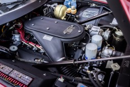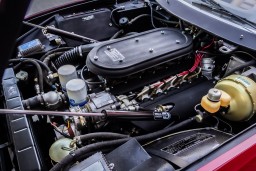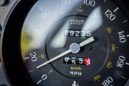Other than the body having been repainted in its original shade of Rosso Ferrari, chassis number 15569 remains overwhelmingly original. The heater, windows, radio, lights, horn, and gauges all function properly, and the interior is completely original, including the trunk lining and the mousehair dashboard surface. Importantly, the exhaust system, the original smog equipment, and the original suspension remain in pristine condition overall.