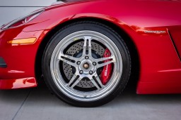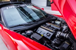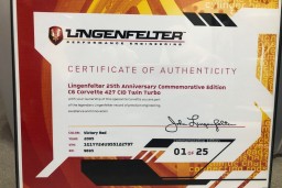 | This incredibly rare 2005 Corvette is #001 of 25 Lingenfelter Commemorative Editions. Total production was only 10 cars not the 25 initially intended. This car was featured on the cover of the May 2006 Road and Track Magazine. An issue of the magazine as well as all of the original documents comes with the car. The Commemorative Edition is equipped with a 427 Twin Turbo V8 putting out 750HP! Along with all of that power, here is a list of other features that make the Commemorative Edition so unique: – Corsa 304 stainless steel exhaust system – with 4 pro series tips – Heavy duty dual disk clutch assembly – Brembo Brakes, two piece rotors, stainless lines – front & rear with white Lingenfelter logo and victory red paint. – Custom Caravaggio Connolly leather seats and duffle bag – Unique body enhancements included: Lingenfelter C6 hood, Lingenfelter front spoiler, Lingenfelter side skirts and unique one piece rear fascia with Lingenfelter logo embossed – The large embossed center logo was only available on the Commemorative Edition all other fascias sold had small logo at the bottom right. – Koni adjustable shocks – Michelin Pilot Sport tires with Lingenfelter mini tub kit and 345/30/ZR19 series in the rear – Lingenfelter 756 Series 19″ C6 forged three piece aluminum wheels – by HRE – Special seat embossing, serial numbered plaque, wheel centers, Lingenfelter chrome fender badges – Special commemorative C6 coil covers complete with the classic John Lingenfelter signature – Commemorative Edition Hypertech HyperPac Onboard Diagnostic Computer |