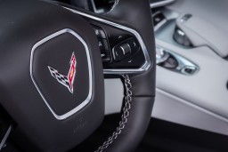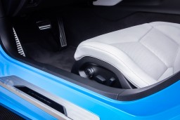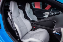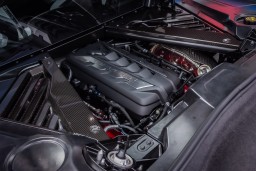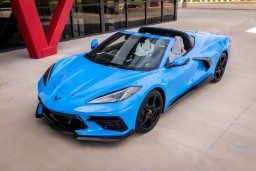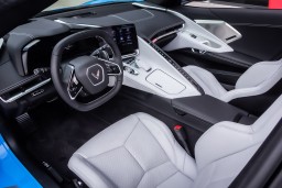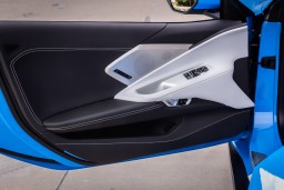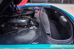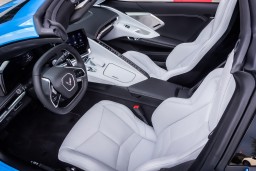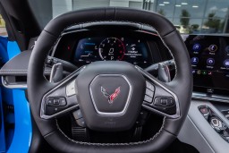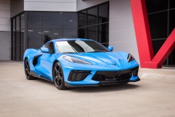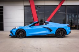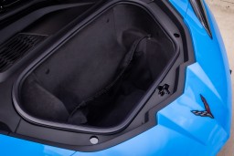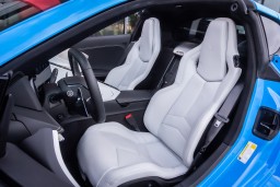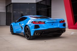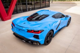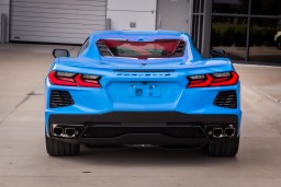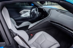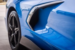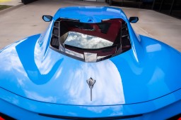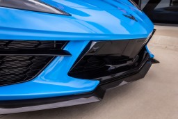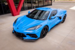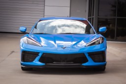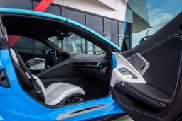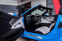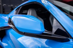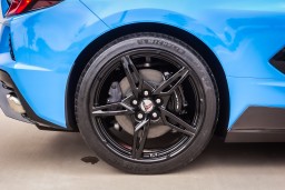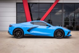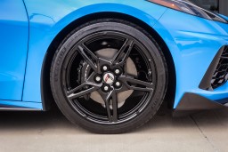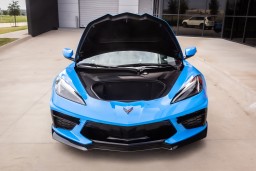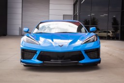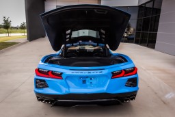 One of the few 2020 Corvettes equipped with the Carbon Fiber Ground Effects Package. This option was discontinued by GM due to the overwhelming amount of the orders that wanted it. This C8 is finished in Rapid Blue with Sky Cool Gray interior. This special color combination further enhances the exotic look of the first ever mid-engine Corvette. The wheels have been powder coated in gloss black to give a higher contrast to the paint.